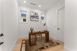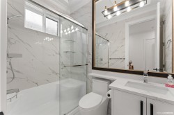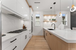 This brand new 8 bed, 8 bath luxury residence offers exceptional living space and income potential, featuring a 450 sqft 1-bedroom garden suite plus a 2-bedroom legal basement suite. Crafted by well-established local builder Rock City Homes (25+ years of experience), this home showcases contemporary design, spacious bedrooms, and premium finishes throughout. Enjoy radiant heating, A/C, engineered hardwood and vinyl flooring, a brick driveway, artificial turf for low-maintenance outdoor living, and over 600 sqft of balconies with views of the city, mountains, and Fraser River. Complete with a theatre/media room and bar, this home blends quality construction and modern elegance. OPEN HOUSE FEB 28 (SATURDAY) & MAR 1st (SUNDAY) 2:00-4:00pm