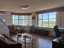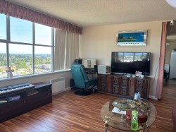 RARELY OFFERED larger 2 bedroom home in the very popular Chancellor tower! Wonderful corner unit with PANORAMIC VIEW of city & mountains! Spacious 2 bedroom and 2 bathroom , plus den (which is closed-in balcony) with beautiful view to Mt. Baker. Beautiful white kitchen with upgraded cabinets, newer appliances, tile flooring, and granite countertops. Both bathrooms have also been upgraded with granite counters and tile floors. Well maintained concrete building with lovely gardens, indoor pool, gym, billiard room, secure parking and on-site caretaker. Great location close to shopping, restaurants and public transit.