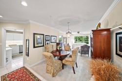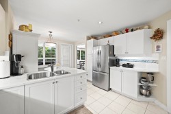 Great location, situated on a quiet street near the Tsawwassen town center. Just steps away from the library, shopping, restaurants and transit—no need for a car! This North East corner unit boasts over 1,300 square feet includes, spacious living room with a gas fireplace, adjacent dining room, updated kitchen with stainless steel appliances, cozy breakfast nook, two large bedrooms and two bathrooms. Enjoy the privacy of your covered patio, ideal for year-round use, with mature trees for added privacy. Additional features include radiant heating Hunter Douglas blinds, one parking space (#19) and a large storage locker (9x4). NO AGE RESTRICTION