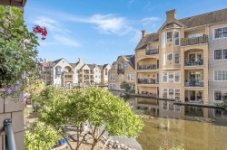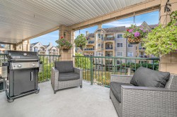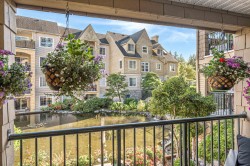 LIVE ON A LAGOON, NEXT TO A WATERFALL! Sunny south-facing 2 bedroom, 2 bathroom at Sommerset West in Windsor Woods with idyllic peaceful lagoon outlook with koi fish and water lilies next to the soothing sounds of the waterfall. Renovated with $40,000 in updates in 2024 including new quartz counters in kitchen/baths, new sinks, 4 new appliances, new laminate floors, freshly painted, new modern lighting, new window coverings & new Mirage Systems screen door onto covered veranda. Spacious layout with cozy gas fireplace, balcony BBQ hookup, and natural gas is included! Secure parking near elevator, electric vehicle charging, storage locker, bike storage, gyms, and sauna. Perfect for pets with Highland Park mere metres away, just steps to shops, restaurants & public transit.