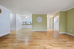 Top Floor Corner unit, large 2 bedroom condo located close to transit, parks, shopping, restaurants & commuter routes. Sungod Villa is a well managed condo building offering beautiful outdoor patio areas, gardens around , inground pool and loads of additional parking in the heart of North Delta. The condo offers a spacious and bright layout with real hardwood flooring and a sunny east facing balcony and southern facing bedrooms. Updated kitchen, updated electrical panel, building full plumbing replacement in 2023, approx 10 year old roof, newer intercom and some updated exterior siding. Heat & hot water included in maintenance fee. Perfect for investors or first time buyers!
