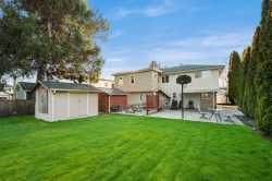 Beautifully maintained two level family home offering 5 bedrooms and 2 bathrooms, set on a private 8,640 sq ft lot on a quiet no through road, with suite potential. The main living area features a bright open concept kitchen with stainless steel appliances and updated cabinetry, flowing seamlessly into the dining and living spaces, ideal for everyday living. The lower level offers additional flexibility with custom built ins and a bar area, making it perfect for extended family, a recreation space, or future suite potential. The backyard is truly spectacular. Private and spacious. Single car garage with plenty of additional parking.