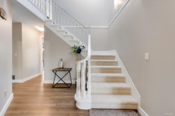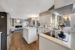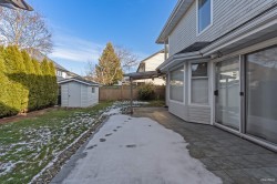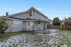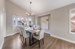 This beautifully maintained home offers space for the whole family and is just a short walk to Holly Elementary. The functional layout features a bright living and dining room with vaulted ceilings, leading to an open-concept kitchen with white shaker cabinets, quartz countertops, and a subway tile backsplash. The cozy family room boasts custom built-ins and a gas fireplace. Upstairs, you'll find a large games room, two bedrooms, and a spacious primary suite with a walk-in closet and ensuite. Additional highlights include a den (or 5th bedroom), a double garage, laminate flooring, and a private backyard perfect for relaxing or entertaining.