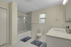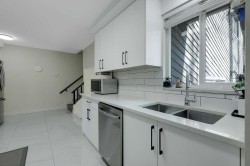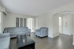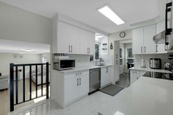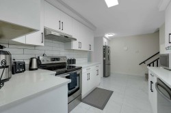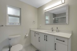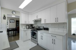 Completely renovated home featuring new bathtub, shower, vanity, sinks, tiled flooring, carpet, double-glazed windows, blinds, entrance doors, closet doors, lighting fixtures, granite kitchen countertops, fresh paint, and roof. Large sundeck off the primary bedroom overlooks a quiet cul-de-sac. Spacious family room can be used as a bedroom. Generous backyard provides excellent outdoor space for family enjoyment. Potential for Garden suite or Coach house according to the OCP, buyer should check with the City Hall.