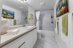Stunningly renovated 2 bed + Den, 2 bath at Chancellor Tower! This rare 1,308 sq. ft. corner home was fully updated just 4 years ago with a modern kitchen, new flooring, fresh paint, and redesigned living spaces that feel brand new. The bright, spacious layout includes a generous living/dining area, large bedrooms, a versatile den for storage, in-suite laundry, and a 121 sq. ft. balcony. Chancellor Tower offers landscaped gardens, indoor pool, gym, billiards room, and on-site caretaker. Steps to shopping, dining, and transit, this home combines comfort, style, and unbeatable convenience. Unit comes with 1 parking & 1 storage. Book your showings today!