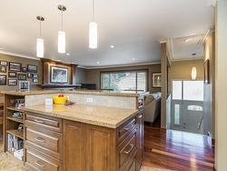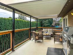 Beautiful & well-maintained home on quiet st. in Annieville. Spotless 4-bedroom, 2.5 bath home features spacious renovated kitchen with island bar, cabinetry with pullouts & updated appliances. Maple Hardwood flooring on main, gas fireplace, 3 bedrooms & sliding patio doors to 29'*10'4 covered deck, ideal for entertaining with family and friends. The basement features a huge living area and, a cozy bedroom with French doors looking out to a parklike, private backyard. Fabulous outdoor BAR/ kitchen area, completely covered & enclosed, ideal for large family parties. Wet bar has extensive cabinetry, bar fridge (gas hookup available). Other upgrades inc. roof (2011), furnace (2020), Hot water tank (2024), fence (2023) new deck railings & large storage rm.(Listing on Hold)
