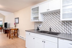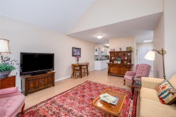 Welcome to “On the Park,” a well-kept 55+ community steps from Centennial Park. This bright & welcoming top-floor condo offers 1,139 sq ft with 2 bedrooms and 2 full bathrooms, including a spacious primary bedroom w/its own ensuite. The southern exposure brings in beautiful natural light, enhanced by vaulted ceilings & a cozy gas fireplace making the living area feel warm & open. The kitchen has been tastefully updated, & most flooring has been refreshed. A large deck off the living area, also accessible from the primary bdrm, provides a sunny place to relax. The home includes in-suite laundry & all appliances. Residents enjoy a storage locker (when available), bike/scooter storage, and exercise/multipurpose rooms. Pets are welcome with 2 cats or 1 small dog (up to 6.8 kg). The location is hard to beat right next to Centennial Park & an easy, level walk to shops, cafés, & services in downtown Duncan. A comfortable top-floor home in a friendly, walkable community.