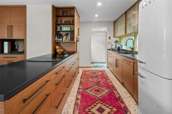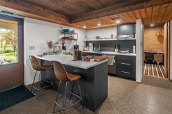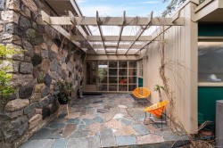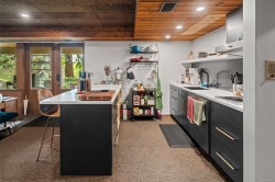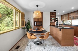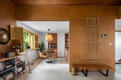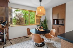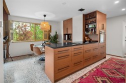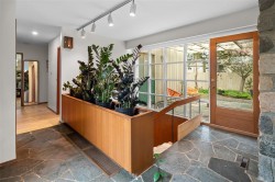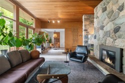 1955 REMASTERED MID CENTURY MODERN ICONDesigned by legendary Harold Wong, this architectural showpiece offers a rare chance to live inside an artful masterpiece. Mahogany walls-interior & exterior, yellow cedar ceilings, concrete terrazzo floors, concrete soft finished floors, floor-to-ceiling wood framed windows-bringing the deep drama. BC stone fireplace crafted with local stone. Both kitchens boast solid maple cabinet boxes, eco-wood doors, corian counter tops and modern linear hardware adding a crisp architectural contrast. A versatile 2 bedroom/2 bathroom in-law suite with separate laundry flows separately out of the lower level. Behind the scenes, upgraded plumbing and electrical, brand-new deck membrane, and meticulous rock work blend seamlessly into the Clive Justice–designed landscaped grounds. Outside, a multi-level waterfall flows into a cement pond framed by towering trees, offering complete privacy in the city. This isn’t just mid-century modern > it’s a mic drop.