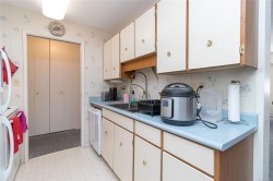 Discover this inviting 2-bedroom, 1-bath condo spanning a generous 843 sq ft in the peaceful "Oakdene" building, nestled on the quieter side near Rockheights Park, bus routes, and a short 10-minute walk to Esquimalt Town Centre with shops and amenities. Enjoy abundant natural light from large west-facing windows that fill the space with sunshine year-round in this well-maintained, predominately owner-occupied complex. Updates include a 2019 mansard roof (flat portion 2010) and refreshed bathroom with no-step walk-in shower, modern vanity, mirror, and toilet. Includes storage locker, assigned parking, workshop, extra storage, and free laundry. Ideal for quiet, stable living. Showings easy to arrange. In today's market, this condo offers outstanding value—with fresh flooring and paint, personalize it easily. Well-managed building with healthy contingency fund. Rare opportunity—call today to view!