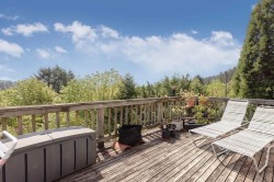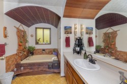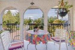 This unique home blends charm, space, and stunning views. The architecture embodies a Spanish style with arched accents throughout, stucco exterior, and a clay tile mansard roof. The main living space offers a warm, inviting feel with large, view-facing windows and a wood-burning fireplace. The kitchen is spacious and functional, with an adjoining breakfast area. The main floor also features three of the home's bedrooms, a dining area, and decks off the living space. The lower level includes a large foyer, a separate family room with a natural gas fireplace, an additional bedroom, large storage room, and laundry room. Other features include a double carport and enclosed storage area, established vegetable gardens, and plenty of room to expand. Lots of privacy and unbeatable location!