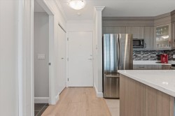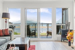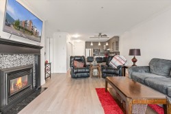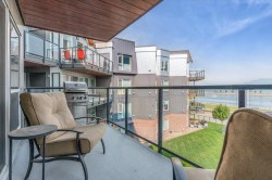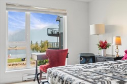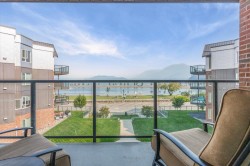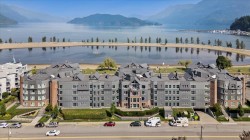 Step inside this beautifully upgraded condo and let your stress fade away with spectacular, direct views of stunning Harrison Lake and the scenic mountains. This 1 bedroom, 1 bath home showcases tiled kitchen floors, Cambria quartz counters, newer cabinetry, modern appliances, and upgraded flooring and lighting throughout. The open living area highlights a newer gas fireplace - ideal for cozy nights in. The generous bedroom offers a wonderful walk-through closet that connects to the stylishly renovated bathroom. A spacious sundeck includes handy storage. Laguna Beach has brand new exterior upgrades and landscaping, making it a signature building in the heart of the village. Amenities include a guest suite, jacuzzi tub and secure parking. This is a retreat you'll treasure all year long.