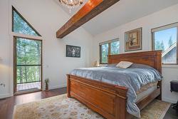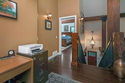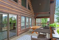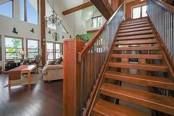 This residence boasts a distinctive post-and-beam design, offering both beauty and individuality rarely found in conventional homes. The expansive, covered front deck provides an ideal setting for entertaining guests while enjoying panoramic views of the Rocky Mountains. Designed as an exceptional mountain retreat, the home emphasizes comfort, connectivity, and versatility. Features include soaring vaulted ceilings, elegant hardwood flooring, a chef-inspired kitchen equipped with granite countertops, stainless appliances, and a large island. The main floor’s open layout seamlessly transitions into a great room highlighted by a striking stone fireplace, creating an inviting space for family gatherings or relaxed evenings. The loft level presents a dedicated landing suitable for a sunlit home office or creative workspace, leading to a tranquil primary suite complete with vaulted ceilings and a private balcony. The spa-like, 5-piece ensuite features a jet tub promoting year-round wellness. There’s a beautiful main-floor bedroom with an ensuite. More adaptable spaces provide privacy and flexibility for family members or guests, while the lower level accommodates hobbies, fitness activities & a soothing sauna. In-floor heating and an appointed mudroom further enhance the seamless integration between indoor and outdoor living. Ideal for retirees, active families, or individuals seeking a refined balance of luxury and practicality, and all within a dynamic and picturesque community.