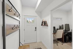 Welcome to The Walk — a modern, low-maintenance community just minutes from downtown Kamloops. This bright end unit stands out with extra windows and natural light that fills every corner. With 2 bedrooms, a den, and 3 bathrooms, this townhouse blends convenience, style, and function in all the right ways. The ground level offers a welcoming entry, a versatile den (perfect for your home office or to tackle your favourite home workout), and a spacious single garage. Upstairs, the open-concept main floor is made for entertaining — the sleek kitchen features quartz countertops, a huge island, and modern cabinetry that flows seamlessly into the living and dining areas. Step out onto your cozy deck — just the right size for your BBQ, a few herbs, or a comfy chair to unwind after work. Upstairs, you’ll find two bedrooms, a full bath, and laundry. The primary suite includes a large closet with custom built-in shelving and ensuite with a full tile shower. Bonus features include air conditioning, the remainder of the home warranty, and a second parking stall just steps away. Enjoy easy access to Peterson Creek Park, the Sagebrush Theatre, schools, and parks — everything you love about Kamloops living is right outside your door. Move in, explore, and start walking your way into a great new lifestyle at The Walk.
