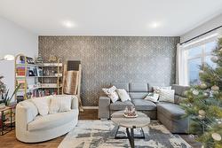 Up one level, the bright and open kitchen and dining area flows onto a south-facing patio, ideal for morning coffee or sunny afternoon relaxation. The kitchen features a custom upgrade by Kitchen Studio completed in 2024, thoughtfully designed with a built-in coffee bar, wine fridge, and office nook—blending function and style for modern living. The living room features large picture windows that frame the sweeping northern views, making the space feel open and airy. A generous 2-piece bathroom completes this floor.