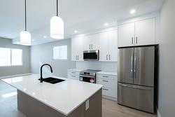 Welcome to modern living in these beautifully finished single family attached homes, offering 4 bedrooms, 2.5 bathrooms, and a choice of two stunning finishing packages. Designed with comfort, quality, and style in mind, these homes are an exceptional blend of functionality and contemporary design. Laminate flooring throughout and elegant tile in the bathrooms and in-floor heating in the master bedroom. The spa-inspired ensuite also includes dual sinks, a tiled shower, and a spacious walk-through closet offering excellent storage. The open-concept kitchen is a true highlight, showcasing quartz countertops, full-height Excel cabinetry with a built-in coffee bar, and a stylish tiled backsplash. A complete stainless steel appliance package is included, with a water line to the fridge. The natural gas BBQ hook-up make everyday living both practical and enjoyable. Price also includes window coverings throughout. The single garage has its your own private driveway for easy parking FEATURES NO STRATA FEES and full ownership of the property your home sits on. THESE PLACES ARE these single family attached homes and offer a rare opportunity to enjoy a low-maintenance, modern lifestyle. All measures approximate.