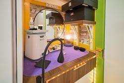 Additional features of the condo include two storage closets, in-suite laundry, air conditioning, window coverings, and one surface parking stall. The 4-piece bathroom is finished with clean, modern details, completing the home’s polished and eclectic look.