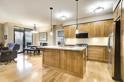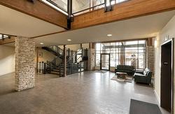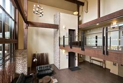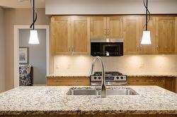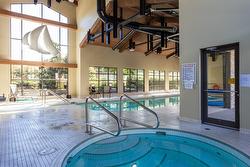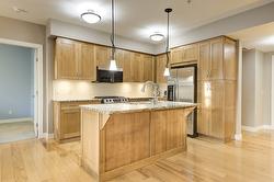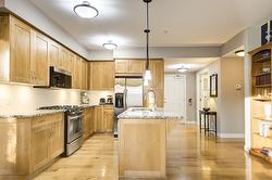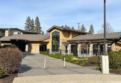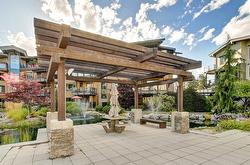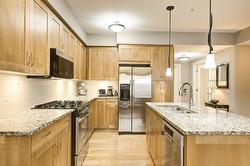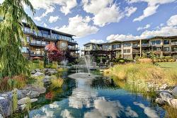 OPEN HOUSE SAT FEB 14th 1-3PM! LUXURIOUS LIVING AT UPSCALE 'SOUTHWIND AT SARSONS' only a 10 minute walk to Lake and lovely Sarsons Beach and Park! This stunning 1497 SF Level Entry Condo with a Bright South facing Covered Patio on landscaped grounds is Beautiful. Huge windows flood the open plan with tons of natural light! 9' ceilings, warm decor, engineered hickory hardwood in main living areas, tile in bathrooms and cozy carpets in bedrooms. Large Open Maple Kitchen with generous island, granite counters, oodles of cabinets, and under cabinet lighting. SS appliances, New Bosch dishwasher! Dining area has glass door to a covered concrete patio and garden area for seamless in-out lifestyle. Roomy Great room features a gas fireplace and huge wall to wall windows bringing the outside in. Double glass doors to a separate office/den off the entry. Luxurious primary bedroom with Extra large 5 piece Ensuite with separate soaker tub/shower, travertine style tile floors, granite counters. Split bedroom design: 2nd bedroom has walk through closet, generous 3 piece bathroom with huge walk in tile/glass shower. Big laundry with cabinets. Southwinds is a 'Cut Above' in luxury design with an Impressive main entry, Separate clubhouse with full fitness facilities, big indoor pool and hot tub, & extensive landscaped and pond areas, walking trails & gardening opportunities for the green thumb! Strata Fee Includes Heat, Hot Water. U/G parking & secure storage. 1 dog or cat, 15" or 12kg.