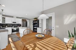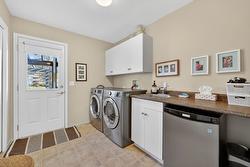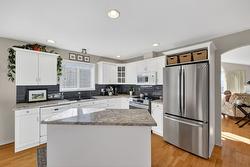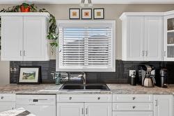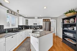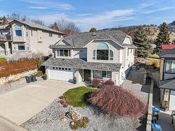 Welcome to this custom original-owner home, lovingly maintained and meticulously cared for throughout. This immaculate 4 bedroom residence features oak hardwood flooring, a skylight above the staircase and in the main bathroom and vaulted ceilings in the living room with a Palladian window showcasing beautiful lake views. A cozy gas fireplace anchors the space, which flows seamlessly into the in-line dining area and separate island kitchen with stainless steel fridge, induction range and a bright eating nook with direct access to the spacious partially-covered patio with pergola, complete with a gas BBQ hookup - this home is perfectly set up for effortless summer entertaining. The main level offers generous bedroom sizes, including a spacious primary suite with large window, motorized blind, walk-in closet and four-piece ensuite. A substantial laundry/mudroom adds everyday convenience - ideal for gardeners and active households. The comfortable lower level includes an office/bedroom, expansive family room, additional bedroom and full bathroom - great for guests or growing families. Don't forget the over 300 sqft of unfinished storage/utility space that your family with use! With a double garage and quiet street location, you’ll love the easy access to Big White, Black Mountain Golf Club, and all nearby amenities. Major updates include: 2024 furnace, 2014, a/c and hot water tank and 2016 roof!