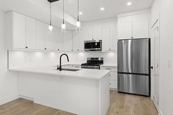 This newly built three-bedroom, three-bathroom townhome is located in Kelowna’s highly walkable South Pandosy neighbourhood, offering easy access to everyday amenities, outdoor recreation, and key destinations. Kelowna General Hospital and Okanagan College are both nearby, along with shopping, dining, transit, and waterfront parks. The home is thoughtfully arranged over three levels, providing a practical layout suited to modern urban living. The main level features an open kitchen and living area with quartz countertops, a gas cooktop, and contemporary finishes, as well as main-floor laundry, a utility area, and a convenient powder room. The second level includes three bedrooms, including a