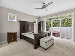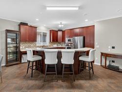 Soaring ceilings, bright open-concept bungalow living and a prime Lower Mission location set the tone for this standout Somerville Corner rancher. This spacious 2 bedroom, 2.5 bath home delivers the kind of easy, single-level lifestyle buyers hunt for but rarely find. The generous primary suite features a true six piece ensuite with jetted tub, while the second full bath sits conveniently beside the guest bedroom, which includes custom wall storage. The kitchen is thoughtfully equipped with a center island, gas rangetop, built-in oven, microwave and wine fridge, and skylights in select areas usher natural light throughout the home. Step outside to a fully fenced backyard offering excellent privacy and a patio ready for relaxing or entertaining. The hot tub is included, although it will need some attention. The oversized triple garage is a major highlight with extensive built-in cabinetry, epoxy flooring and secure space for three vehicles indoors plus room for two more in the driveway. Ideal for storage, hobbies or a workshop setup. Somerville Corner is a quiet, highly sought after Lower Mission enclave within walking distance to Rotary Beach, Mission Creek Greenway, local shops, restaurants and transit. Residents also enjoy access to secure RV parking. A fantastic opportunity to own a well designed rancher in one of Kelowna’s most convenient and livable neighborhoods.