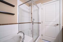 The master bedroom offers double closets and an ensuite bathroom with a shower and separate bath tub for those who prefer quick showers and relaxing bathing on the weekends.