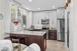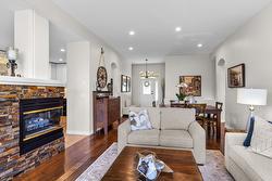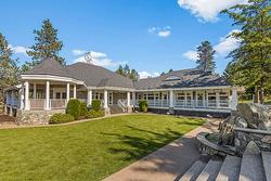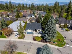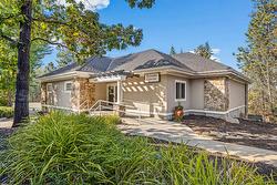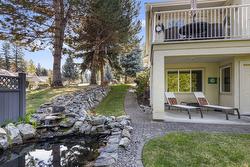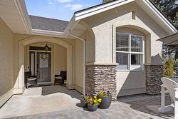 Beautiful Walkout Rancher in the Gallaghers Canyon Golf Community. From the moment you step inside, you’ll be captivated by the grand interior, featuring gleaming hardwood floors, soaring ceilings and large picture windows. The updated kitchen boasts stylish two-tone cabinetry, stainless steel appliances, a functional layout and a striking 3-sided gas fireplace. The living room is a sophisticated retreat, perfect for unwinding after a round of golf or hosting friends and family. The primary suite is complete with a spa-inspired ensuite, a massive walk-in tiled shower, and a generous walk-in closet. Also on the main level is a bright second bedroom and a convenient laundry room. Downstairs, the fully finished walkout lower level offers suite potential with a separate entrance, two additional bedrooms, a den/media room, a spacious family room, and a summer kitchen—ideal for guests or extended family. The outdoor living space is nothing short of spectacular. At the front, a large courtyard sets the tone for relaxed mornings & evening gatherings, while a tranquil water feature with a stream and pond adds to the peaceful ambiance. Additional upgrades include a new exposed aggregate driveway, new asphalt roof, and a recently replaced hot water tank. Enjoy top-tier amenities including an indoor pool, whirlpool, fitness center, pickleball, games room, club rooms, and library. In addition, there is a "coming soon" daycare to serve the families of the East Kelowna Area!