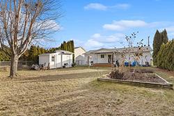 Charming & Updated Rancher on a Private 0.21 Acre Lot! Discover the perfect blend of comfort and convenience in this pristine 2-bedroom rancher. Situated on a flat, fenced 0.21-acre lot, this home is an ideal opportunity for first-time buyers or those looking to downsize into a stair-free retirement. Step inside to find a tastefully updated interior featuring durable laminate flooring and energy-efficient vinyl windows throughout. The heart of the home is the classic oak kitchen, upgraded with gleaming granite countertops. Outdoor living is effortless here. Relax on the spacious covered porch overlooking a sprawling, private backyard— perfect for gardeners, pets, or summer entertaining. There are ornamental plum & cranberry trees, gardens full of perennial flowers and ample lawn space creating a peaceful retreat. Two storage sheds provide lots of room for tools and toys. Ideally located just minutes from central amenities and a short walk from the scenic trails of Mission Creek. This value priced home makes for a great townhouse alternative for those looking to avoid strata rules and fees!
