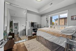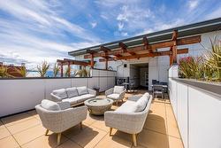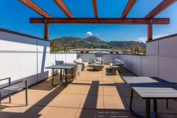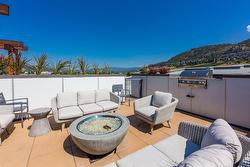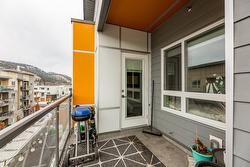 This spacious 2 bedroom, 2 bath, top floor West facing unit features elevated views of the street and Kelowna city skyline from its expansive windows and private cozy covered patio. It is thoughtfully laid out with an open and efficient split bedroom floor plan. The master has a 3-piece ensuite and the second bedroom has access to the main bathroom as a cheater ensuite.