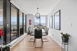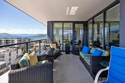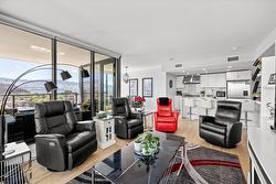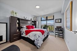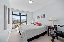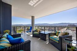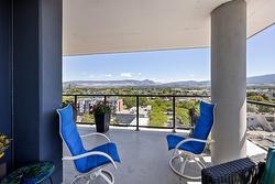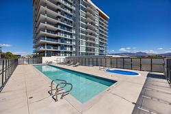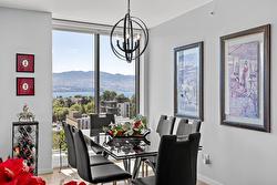 Fabulous South Pandosy Condo with Unbeatable Views! You can really utilize the deck here as there isn't as hot as the west facing units from April until October. Experience luxurious urban living on the 9th floor of a prestigious concrete building in highly sought-after South Pandosy. This stunning 3-bedroom, 2-bathroom, 1407 square foot condo offers breathtaking panoramic views of the lake, mountains, and city through expansive floor-to-ceiling windows. The spacious primary bedroom features a walk-through closet and a lavish en-suite bathroom. The gourmet kitchen is a chef's dream with a stylish quartz island and seating, high-end appliances, including a Wolf gas stove. Enjoy unparalleled convenience with the beach, restaurants, shopping, hospital, fitness centers, and clinics all at your doorstep. The building offers exceptional amenities including a secure underground parking spot with each spot EV Ready!, a well-equipped gym, and a private pool. Don't miss this opportunity to live in the heart of South Pandosy with everything you need within reach!