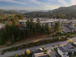 Welcome to GlenHeights at Westhills — a rare, private corner unit w/ sweeping, unobstructed views of Langford Lake, Skirt Mountain & more. Just steps from the water, this bright, airy 2BD/2BA home features 9’ ceilings, oversized windows & an open-concept layout ideal for modern living. The kitchen shines w/ granite counters, SS appliances & under-cabinet lighting, while bedrooms are thoughtfully separated for privacy. The primary suite offers a WIC & full ensuite. Enjoy year-round comfort w/ geothermal in-floor heating (incl in strata), in-suite laundry & same-floor storage. Step onto your large covered deck to unwind in privacy, or explore nearby parks, trails & lakeside paths. Pet-friendly bldg allows BBQs & includes secure underground pkg + bike storage. With YMCA/YWCA, library, cafés, schools & shops all within walking distance, this home blends tranquility, convenience & the best of Westhills living.