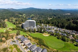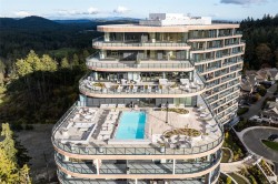 This exquisite 11th floor, corner suite, 2 bedroom, 2 bathroom condo boasts breathtaking west facing views over the 18th fairway & Mt. Finlayson. Premium features include oak flooring, 10ft ceilings, floor-to-ceiling windows, Bosch appliance package, quartz countertops and elegant cabinetry. The living room, with a cozy gas fireplace, opens to a wrap-around 600+sq ft sundrenched patio - perfect for entertaining or savoring sunsets. The primary bedroom offers a walk-through dressing closet and spa-inspired ensuite plus a bonus home office (possible 3rd bedroom) w/golf course views. Enjoy world class amenities: Concierge service, Grenoble Sky Lounge, Business Center, Fitness & Yoga Studio, Outdoor Pool & Sundeck. Complete with 1 oversized parking stall, storage locker, bike storage, and a dog wash station, this residence offers a luxurious, resort-style experience. Don’t miss your chance to own one of the most coveted floorplans One Bear Mountain has to offer! *NO GST*