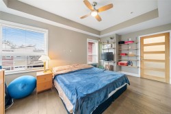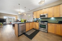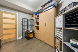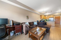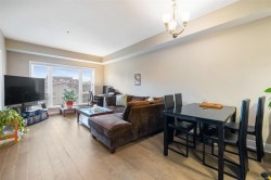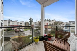 Welcome to Casa Bella. 201 is a must see, generously sized 2 bedroom 1 bathroom corner suite. Highlights include large master bedroom with walk in closet, engineered hardwood flooring, full in-suite laundry, plus a Murphy bed paired with custom office storage. Sunny patio space great for BBQ's. A seamless open-concept design flows beautifully. Chef-inspired kitchen with stainless steel appliances, luxurious granite counters, and custom lighting. Prime location just minutes from downtown Langford, close to shopping, dining, schools, and transit. An excellent fitness centre and peaceful Japanese garden add to the properties desirability. 1 secured underground parking spot, a storage locker, and plenty of street parking nearby. Pet-friendly strata welcomes dogs & cats. Book a showing and view your new home today!