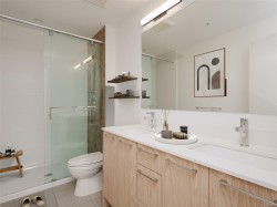 Welcome to Belmont Residences East—where modern design, walkable convenience, and a peaceful natural setting come together. This spacious 2-bedroom home features an oversized south-facing balcony overlooking the tranquil greenbelt—a perfect backdrop for slow morning coffees, alfresco dinners, or sunset drinks with friends. Inside, enjoy a contemporary kitchen with quartz counters and a full island, wide-plank vinyl flooring, ample built-in storage, and generous windows that invite in warm natural light. The spa-inspired ensuite offers his-and-hers sinks, while a heat pump with AC ensures year-round comfort. Amenities include secure underground parking, assigned stall with EV rough-in, a storage locker, bike facilities, a pet wash station, outdoor playground, and access to the Belmont Club with lounge spaces, work areas, and a kids’ playroom. A refined home in a standout location. Belmont Market & Westshore Mall at your doorstep. Call your REALTOR® today!