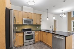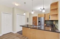 Top-floor 2-bed, 2-bath condo in the well-managed Casa Bella complex. This bright and airy unit features vaulted ceilings (up to 15 feet), large windows, and a private balcony overlooking landscaped gardens and walking trails. The modern kitchen offers stainless steel appliances, quartz countertops, and a breakfast bar. The primary bedroom includes a full ensuite with a deep soaker tub. The second bedroom is ideal as a guest room or office (no closet). In-suite laundry, underground parking, and a storage locker included. Enjoy access to a fitness centre and games room in a peaceful, park-like setting. Pet-friendly and located minutes from Millstream Village and Hwy 1 for easy commuting. Book your showing today.