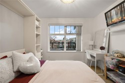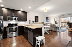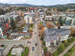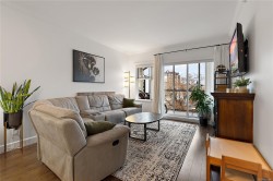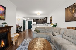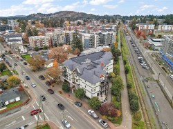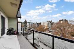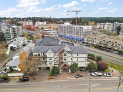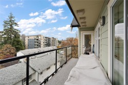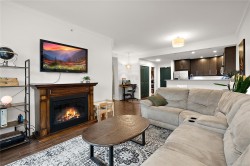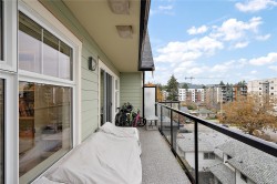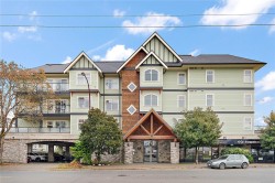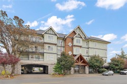 Top-floor living at its best! This bright and beautifully maintained 2-bedroom condo offers impressive natural light, added privacy, and elevated views. The open-concept layout features a spacious kitchen with stainless steel appliances, rich cabinetry, and a breakfast bar that flows into the inviting dining and living area—complete with a cozy electric fireplace and access to the sunny balcony. The generous primary bedroom includes ample closet space and a clean, modern ensuite. A second well-sized bedroom is perfect for kids, guests, or a home office. Enjoy in-suite laundry, a large storage room, and thoughtful touches throughout. Step outside to a covered balcony ideal for morning coffees or evening unwinding while taking in the treetop and city views. Located in the heart of Langford, you're just steps to shops, cafés, transit, and amenities. A stylish, comfortable home in a walkable, convenient location.