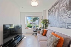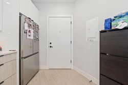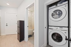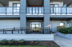 Welcome to GENESIS - A contemporary living designed for comfort and convenience in the heart of Langley! Built in 2022, this bright 1 bed, 1 bath home offers an open-concept space with stainless steel appliances, quartz countertops, laminate floor in the kitchen/living area and carpet in the bdrm, in-suite laundry, and a cozy private patio for your morning coffee! This unit comes with 1 car parking and 1 storage locker. Building amenities include a gym, amenity room, mini-golf and garden area. Walkable to downtown Langley, No Frills, Save-On-Foods, Shoppers, library, Timms Community Centre, proposed 2028 Sky Train Station, shopping, restaurants and coffee shops. Bus stop right outside the strata unit. 2-5-10 warranty remaining! Call for your private viewing!
