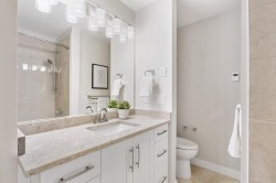 Welcome to Kensington Gate by Quadra Homes! This 2 bedroom, 2 bathroom home has it all! Gourmet kitchen stocked with stainless steel, high end appliances including a 5 burner gas cooktop, convection oven, quartz countertops and white shaker cabinets. Heated tile floors in the bathroom, 9 ft ceilings, oversize windows. High quality finishings and A/C included!!! Spacious Patio with BBQ gas hookup with direct access to the courtyard. Great, quiet location. Steps away from Lynfripp Elementary school and within 5 min drive to all shops and transportation. 2 underground parking spaces with access for electric car charger & storage locker!