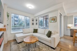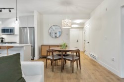 Bright, open, southwest-facing 2-bed, 2-bath corner home with a highly sought-after ground-level walkout patio, built by award-winning Zenterra. Excellent floor plan with 9 ft ceilings and vinyl plank flooring throughout. The kitchen features shaker-style cabinetry with a pantry, Samsung stainless-steel appliances with a gas range, a large island, quartz countertops, and an undermount sink. Two spacious bedrooms plus a bonus linen/storage area. Gas hookup on the patio. Unbeatable location: walk to coffee shops, restaurants, fitness facilities, and the Langley Events Centre. Future rapid transit will connect this area directly to SkyTrain. One underground parking, with more available to rent/purchase, plus plenty of street parking right out front.