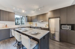 POLYGON - Ashbury & Oak. Beautiful 3 Bed + Den (4th Bed) / 3 Bath townhome featuring a bright, spacious open-concept layout with 9' ceilings. The ground floor offers a den conveniently located by the front entrance-ideal as a 4th bedroom or a perfect home office for a home-based business. Double side-by-side garage and a fully fenced, oversized front yard for added privacy and outdoor enjoyment. Enjoy an impressive 8,000 sq.ft. resort-style clubhouse with outdoor pool, hot tub, fitness centre, billiards, pet washing station, kids' playroom, and guest suites. Upgrades include brand new carpets and a new fridge. Prime location within walking distance to R.E. Mountain Secondary (IB Program), Yorkson Creek Middle, Lynn Fripps & Uplands Elementary, plus Carvolth Bus Exchange, Town Center.