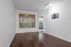 2 BED | 2 BATH | LARGE FLEX/DEN | PRIVATE PATIO. Bright & beautifully designed OPEN CONCEPT home that is functional, well laid out & exceptionally built. Bedrooms are positioned on opposite sides for added privacy, each with walk-through closets and ensuites featuring heated floors. Versatile DEN/FLEX room with closet works as a home office or potential 3rd bedroom. Updated white kitchen with quartz counters, 5-burner stove, walk-in pantry & BRAND NEW fridge with ice & water. Large private patio for year-round use. AIR CONDITIONING & high-efficiency heat pump. Updated carpets in both bedrooms. Vacant & move-in ready. 2 parking stalls plus secure garage-style storage with power. Excellent location close to shops, restaurants, schools, trails & HWY 1. Strata fee incl gas, hot water & gym.