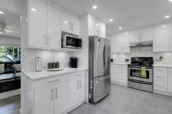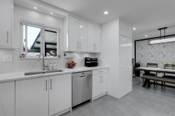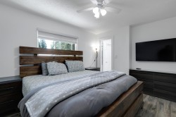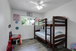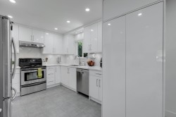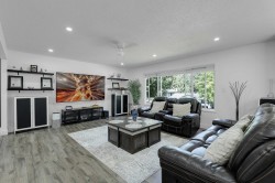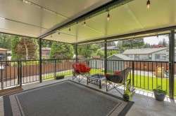 Meticulously maintained and move-in ready, this centrally located 4-bedroom, 3-bath home with a den and spacious rec room is ideal for family living. Thoughtful upgrades shine throughout, including modernized bathrooms, quartz countertops, a sleek backsplash, updated flooring, EV charging and energy-efficient new windows. Outside, enjoy a newer roof, large covered deck with aluminum railings and awnings, and a leveled, tree-free backyard designed for easy care. The paved asphalt driveway offers ample RV or boat parking. Added comforts include a high-efficiency furnace, tankless on-demand hot water, and central air conditioning. Lower level is perfect space for inlaws or to be used potentially as basement suite with separate private access.