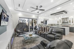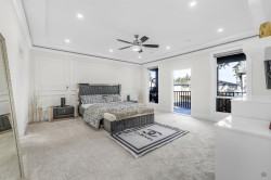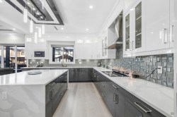 Welcome to prestigious Havenwood! This stunning West Coast-inspired 11 bed, 9 bath home sits on a spacious 7,439 sq/ft corner lot, offering modern luxury at every turn. The open-concept main floor features soaring double-height ceilings, a bright living and dining area, a MASTER SUITE on the main, an additional bedroom, and a family room with a built-in entertainment wall. The gourmet kitchen includes a large island, quartz countertops, high-end KitchenAid appliances, and a SPICE kitchen. Upstairs has 4 spacious bedrooms, each with its own ensuite, including a luxurious primary suite with a fireplace, walk-in closet, and entertainment wall. Two mortgage-helper suites (2 Bed + 3 Bed) generate excellent cash flow. Don’t miss this elegant opportunity