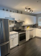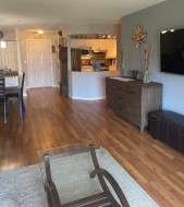 Michaud Gardens. Spacious 2 bedroom/2 bathroom apartment in excellent condition. Second floor private, quiet unit facing the interior gardens. Recently renovated with new laminate flooring, bathroom fixtures and lighting. The kitchen has excellent work space and features new counter tops, stainless steel appliances and built-in cupboards for extra storage. Conveniently located to excellent shopping, recreation, elementary school and the soon to be completed Skytrain. 2 social rooms and a workshop are an added bonus.