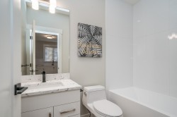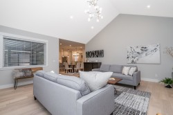 Stunning level entry basement home with quality workmanship & thoughtful design. Incredible European builder. Open-concept plan highlighted by wide-plank hardwood flooring, white shaker cabinetry & elegant quartz countertops throughout. Main features Gourmet kitchen w/large island, pantry, gas range & Fisher & Paykel appliance package, spacious great rm & doors to huge covered deck w/stairs to yard. 4 bedrooms & 2 full bathrooms, both w/dual vanities, walk-in shower & soaker tub complete the main floor. Lower level includes a den, wet bar, family rm & potential additional bedroom - could be a great nanny suite. Sep entrance to a legal 2-bedrm suite w/own laundry. H/W on demand & A/C! Sought after neighbourhood- close to schools, parks, dog park, Al Anderson Pool & miles of nature trails.