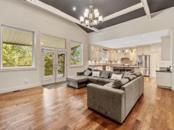 Rare find with ultimate privacy and exceptional space—room for the whole family! 6 bedrooms and 6 baths over almost 4300 square feet. Bright open-concept great room with lofty ceilings, chefs kitchen showcasing an oversized island, granite countertops, stainless steel appliances, and gorgeous hardwood flooring throughout. Bonus Primary bedroom on the main floor. Lower level contains 3 spacious bedrooms, 2 full baths, and a family room with deck access to the backyard. Lower daylight walkout level features a legal 2BD/2BTH suite. Close to town, parks, schools, shopping, and all amenities. Tons of parking plus natural gas generator, A/C, solar panels, and EV charging.