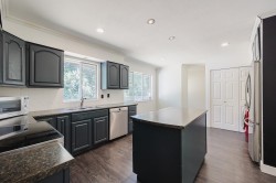 BEGINNER OR INVESTMENT PROPERTY. Situated adjacent to a lush greenbelt, this spacious 1,500+ sq.ft. rancher on 7858ft lot features durable laminate flooring throughout. Floor-to-ceiling windows offer stunning views of the south-facing backyard, which is perfect for relaxation or entertaining. The home includes generous living and dining areas with a slider door leading to a large private back yard with space for a hot tub—and a patio ideal for summer gatherings. A separate family room provides extra space for a pool table or media center. The property offers a double garage plus plenty of parking, including space for an RV. Ideal location for a home-based business. Conveniently situated near schools,shopping,recreation centers,golf courses,transit,Park & Ride, and the Golden Ears Bridge.