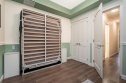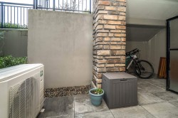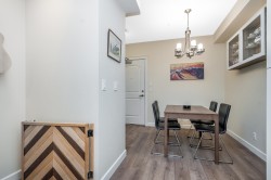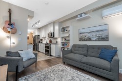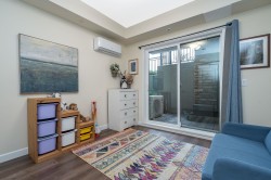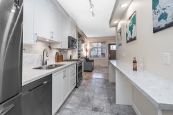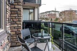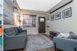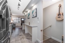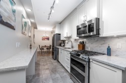 Wow, this is a rare find! Its more like a townhouse than a Condo. Your own door onto a peaceful deck, with direct access to street parking. Inside you have two floors both with 9 foot ceilings, upstairs you have a bright south facing living room, kitchen and dining room, down stairs you have an outdoor patio and two bedrooms and a washroom with heated floors and "Rain" shower. Each level is air- conditioned and is in excellent condition. The Kitchen comes with Wi-fi appliances and you have a gas range with a gas bbq on the deck. Close to Transit and walkable to many shops and restaurants, this place has it all. Need Parking and storage, this unit comes with two parking spaces and two storage units, one comes with electricty. Book your private showing today!