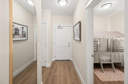 Welcome to Kensington Gate! MOVE IN Today!This 2 bedroom, 1 bath condo features a gourmet kitchen with high-end stainless appliances, 5 burner gas cooktop, convection oven, quartz counters, and shaker cabinets. Enjoy heated tile floors in the bathroom, 9’ ceilings, oversized windows, and A/C. Relax on your 10’3 x 10’ sundeck with gas BBQ hookup.Renting allowed. Pets allowed. Strata fee includes Hot Water and Gas. Includes secure underground parking with EV access, pickleball court, 10x10 storage unit, and quality finishing throughout. Walking distance to shops, restaurants, and the future SkyTrain. 1 block from elementary school, 2 blocks from middle schools. Large Price Reduction! Don’t miss out call today! OPEN HOUSE SUNDAYS 12-5PM