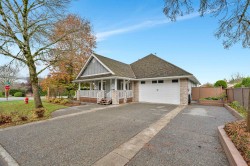 Stunning 3-bedroom, 2-full bathroom open concept rancher in Murray’s Corner! This spacious home boasts a welcoming wrap-around deck, front office/den w/ separate entry, bright & open living area w/ bay window, gas fireplace & large adjacent dining area. Kitchen w/ quartz counters, stainless appliances, generous counter space & cabinetry, pantry, & eating area. Sliding door access to spacious covered deck, stamped concrete patio, gazebo, sheds, & beautifully landscaped & fenced yard. Three bedrooms including primary bedroom w/ 4 pc ensuite & walk-in closet. 4 pc main bathroom, laundry room, & storage/utility room w/ crawlspace access for add'l storage. New carpets & hot-water tank. Central A/C! Double car garage & small RV parking. Short walk to parks, golf, cafés, schools, & shopping.
