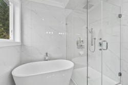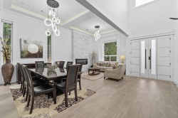 Brand new luxury home in the Brookswood-Langley area. This 3-level residence offers 9 bedrooms and 9 bathrooms with radiant heating, quality construction, high ceilings, and excellent natural light. Situated on a 6,998 sq. ft. lot with spacious living throughout. The main floor features elegant living and dining areas, a large family room, designer kitchen with separate wok kitchen, 1 bedroom ensuite, private office and mudroom. Upstairs offers a generous primary bedroom with ensuite and 3 additional bedrooms, and a loft. The fully finished basement includes a 2x-2-bedroom suite, with separate entry, ideal for extended family or rental income. Recreation/media rooms, and bar for entertaining. Professionally upgraded yard with red mulch, defined landscape borders.